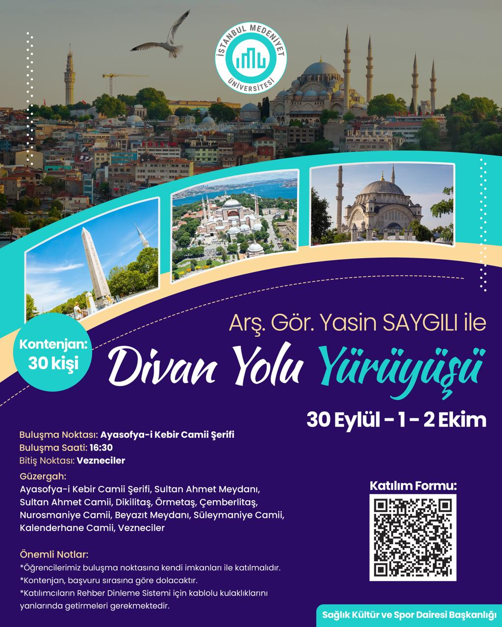 İstanbul Medeniyet Üniversitesi Sağlık Kültür ve Spor Dairesi Başkanlığı tarafından düzenlenen “Divan Yolu Yürüyüşü”, öğrencilerimizi İstanbul’un tarihî mirasıyla buluşturuyor.