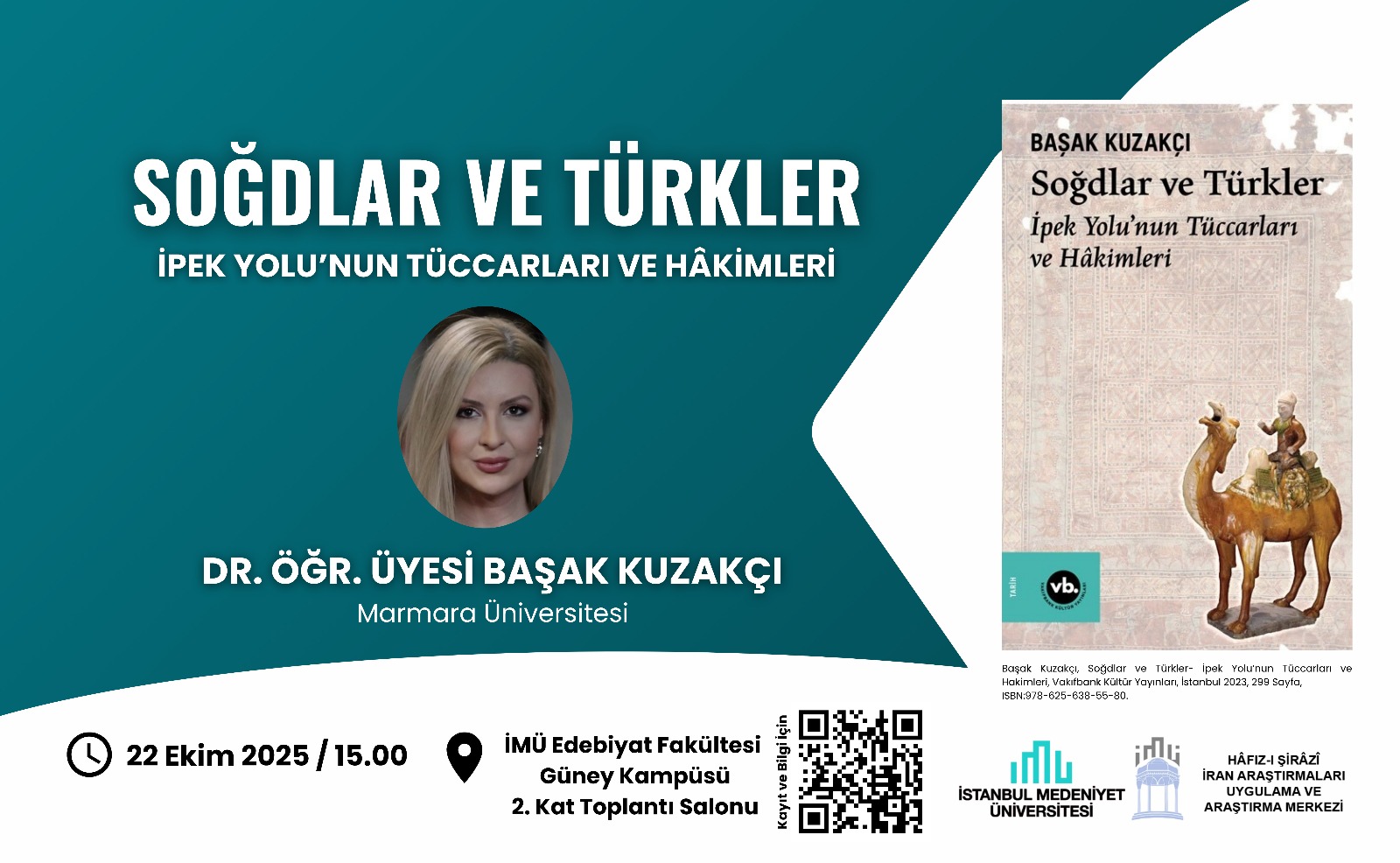 Bu kapsamda, İstanbul Medeniyet Üniversitesi Hâfız-ı Şirâzî İran Araştırmaları Uygulama ve Araştırma Merkezi olarak düzenleyeceğimiz etkinlikte, “Soğdlar ve Türkler: İpek Yolu’nun Tüccarları ve Hâkimleri” adlı eserin yazarı, Marmara Üniversitesi öğretim üyesi Dr. Öğr. Üyesi Başak KUZAKÇI, merkezimizin konuğu olacaktır. Katılımcılar, Soğdların tarih sahnesindeki yükselişinden Türk Kağanlığı dönemindeki etkinliklerine kadar uzanan bu zengin tarihî süreci yazarın kendi çalışmasından dinleme fırsatı bulacaklardır.